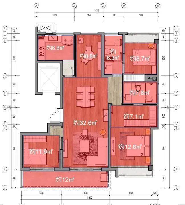 户型:四房两厅两卫