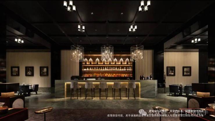 建筑面积约1500m²恒温泳池会所及落差达约10米的水幕下沉式园林的打造,在奢石、臻材等元素的空间应用中,让显贵世家的社交场景,相映于粼粼碧波的柔光之中,于方寸之间游离世外。
