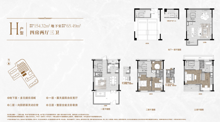 风貌别墅,供应稀缺,立体墅居,超高附加值,地下室、花园、露台,主力附赠面积达80+㎡,降维打击平层产品;