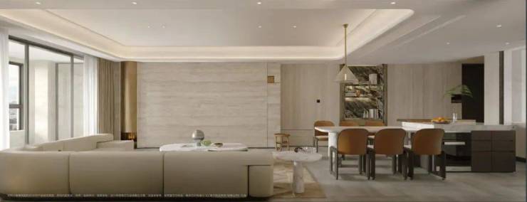 会客空间约有50平,餐客厅一体化足足有近百平,尺度感超强。