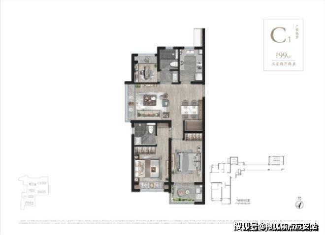 建筑面积约99-104㎡3房