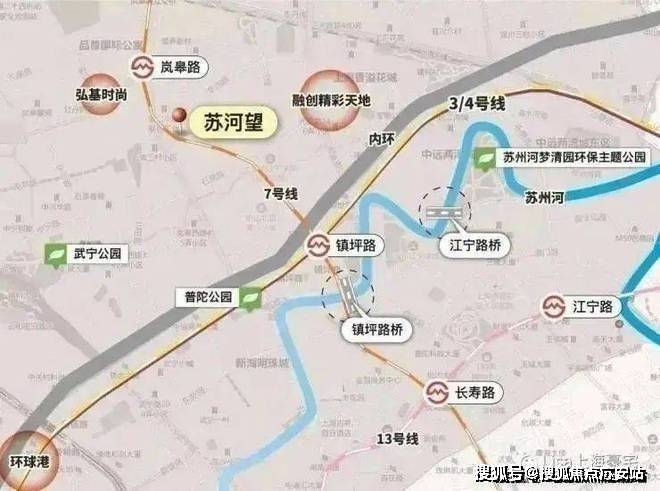 苏河望交通很优越,就在真如副中心,直线距离7号线岚皋路站仅约400米,1站可换乘3/4号线,便捷换乘上海各条地铁线路,4站可达静安寺,6站可达人民广场.