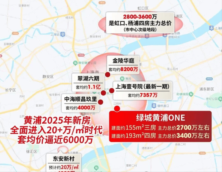 如今的黄浦,早已坐实「全国第一富人区」,全国富豪争相竞逐,今年新房成交均价站稳20万/㎡,门槛几近5000万级,套均总价逼近6000万。后续黄浦高层主力在260㎡以上,门槛锁定5000万级。