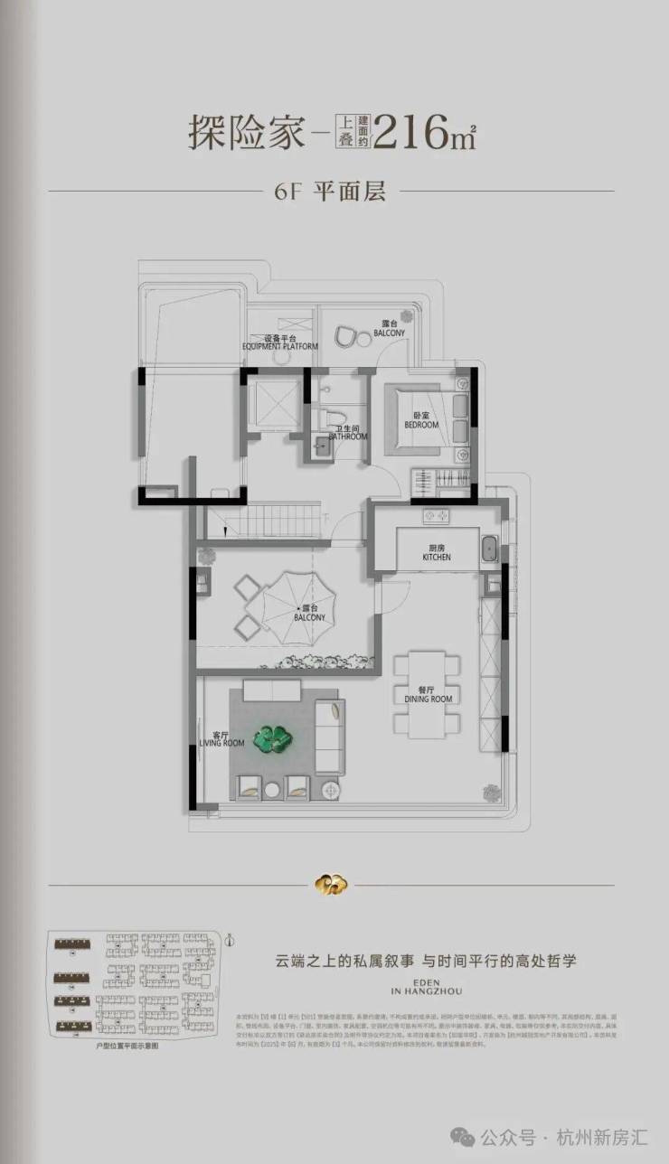 The building covers an area of approximately 196-218 square meters, with an innovative elevated design. The first floor bids farewell to dampness, and each household has a private staircase, with a respectful homecoming ceremony. The floating terrace extends the living environment, and the 270 ° sky garden creates a natural world. With a distance of about 33 meters between buildings, one can see the folds of all seasons. Middle/upper stacked quiet zones live adjacent to each other without disturbance. The total price is 6 million yuan, and everyone's dream of living in a villa is achieved.