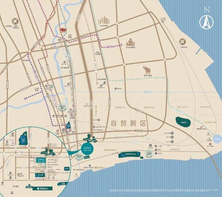 自驾方面,项目周边有林海公路、浦星公路、沪金高速、沪奉高速(建设中)与绕城高速、申嘉湖高速组成的立体路网,辐射大浦东黄金生活圈。此外,项目离规划中的奉贤线海湾镇站约1公里,未来的轨道出行也十分便捷。