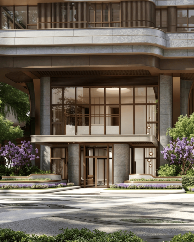 项目独占约1.5公里黄金江岸线,占陆家嘴北滨江岸线约30%,稀缺性无可替代。基于这一独特优势,景观设计采用“江-园-宅”三级递进布局,从滨江步道到社区园林,再到入户庭院,层层递进,实现“推窗见江,移步见园”的居住体验。内部以“水之韵律”为线索,复刻黄浦江的流动感,打造蜿蜒的景观步道、叠水景观与中央草坪,搭配丛生铁冬青、四季花卉等植被,形成四季有景、步移景异的园林体验。同时,景观设计充分考虑业主的社交与休闲需求,在园林中嵌入休憩凉亭、邻里交流区,让自然景观成为连接人与人的纽带。