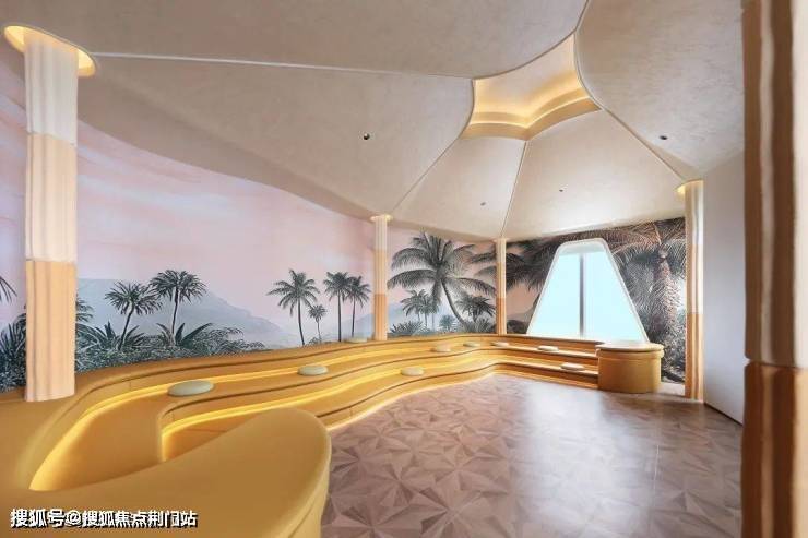 步入雅致的美学生活馆,周遭尽是白洞石的精致铺陈,地面则以鸢尾花图案巧妙铺就,不仅展现出柔和而高雅的色调,更在每个细节中融入鸢尾花的优雅轮廓,将“光明与希望”的意境渲染得淋漓尽致。