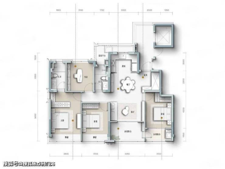 四开间朝南设计,主卧套房设计,宽景封闭式阳台。