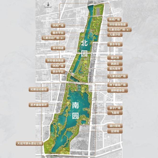 立址大运河上游发端的白浮泉湿地公园,创新采用"南北双园"布局,以13公里滨水慢跑道串联两大主题空间。北园主打"城市休闲",打造全龄友好型活动矩阵,涵盖29个特色功能区;南园聚焦"自然游憩",33个主题活动区星罗棋布,更设13.44万㎡篮球场、足球场、羽毛球场等专业运动空间,实现自然野趣与运动活力完美融合的全龄友好健身矩阵。0-12岁分龄童趣乐园,更入选《全国儿童友好公园打卡地图》。