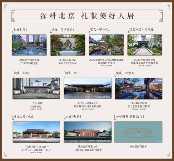 建发房产进京五载,以十大经典作品礼献美好人居,从长安和玺、建发·望京养云惊艳四座,到建发·珺和府、建发城建·文源府双子星闪耀京北,再到建发·璟院、建发·观云收获满堂喝彩,建发房产用一个个作品启幕品牌传奇之旅,同频城市发展向上势能,赋新诗意东方人居理想。