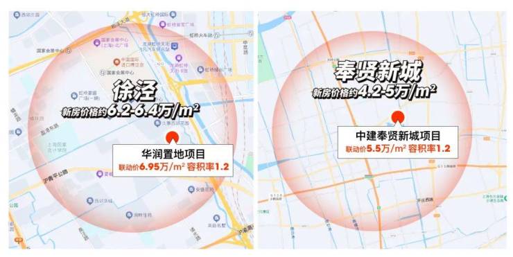 比如青浦徐泾容积率1.2的宅地和奉贤新城容积率1.2的宅地,比起板块其他新房,联动价至少高5000元/㎡!