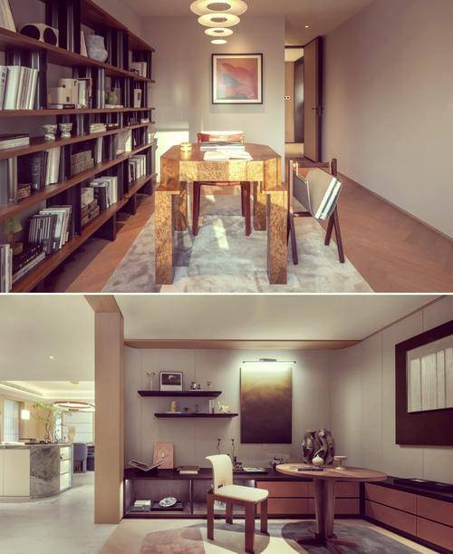 餐厅区域更是点睛之笔,通过巧妙利用过道空间,拓宽用餐区域。