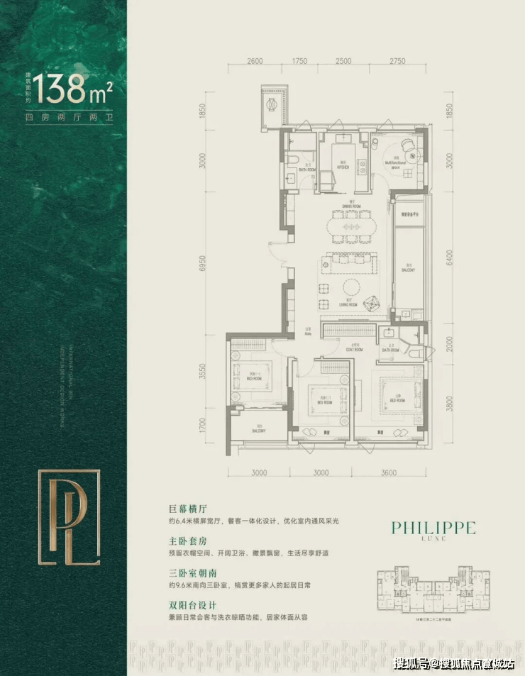 建面约138㎡是全明边套,三面采光,270°环绕视野。配上约6.4米横厅与大阳台,像一块被阳光浸透的生活幕布,日常就很有度假感。
