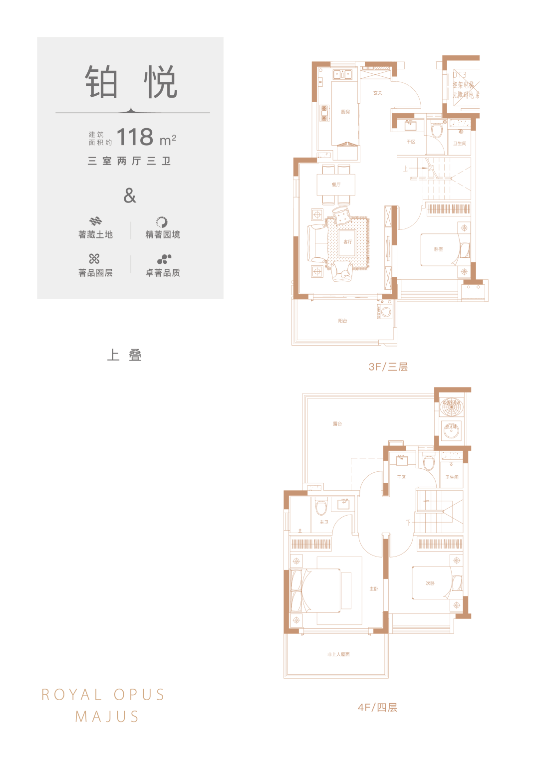 上叠:118(3室2厅3卫),150(4室2厅3卫),200(4室2厅4卫)