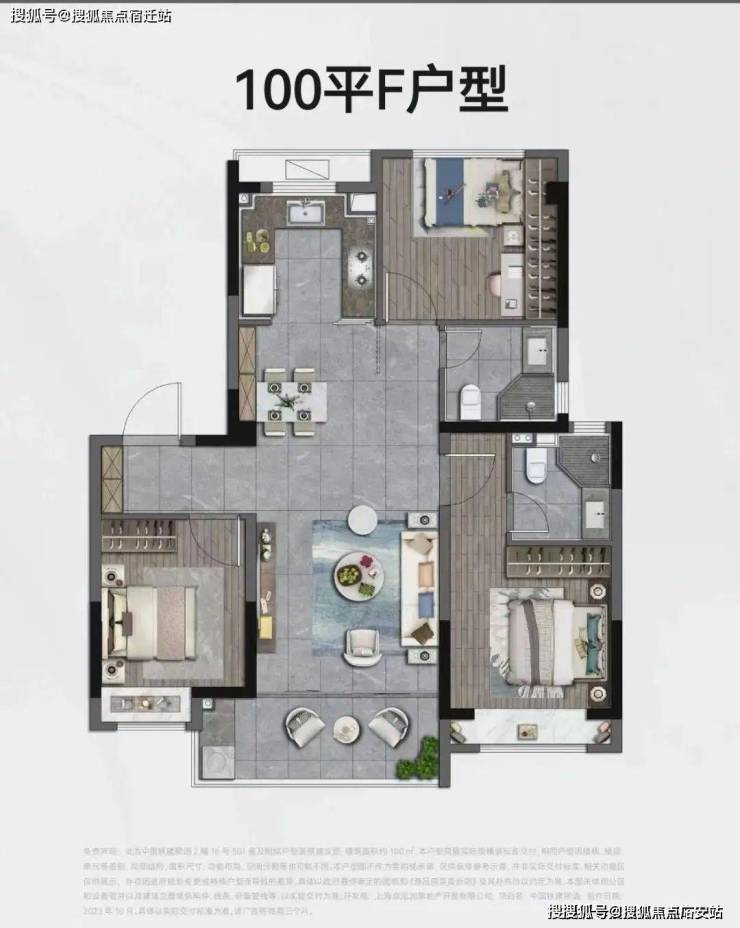 建筑面积约100㎡样板间实拍示意图