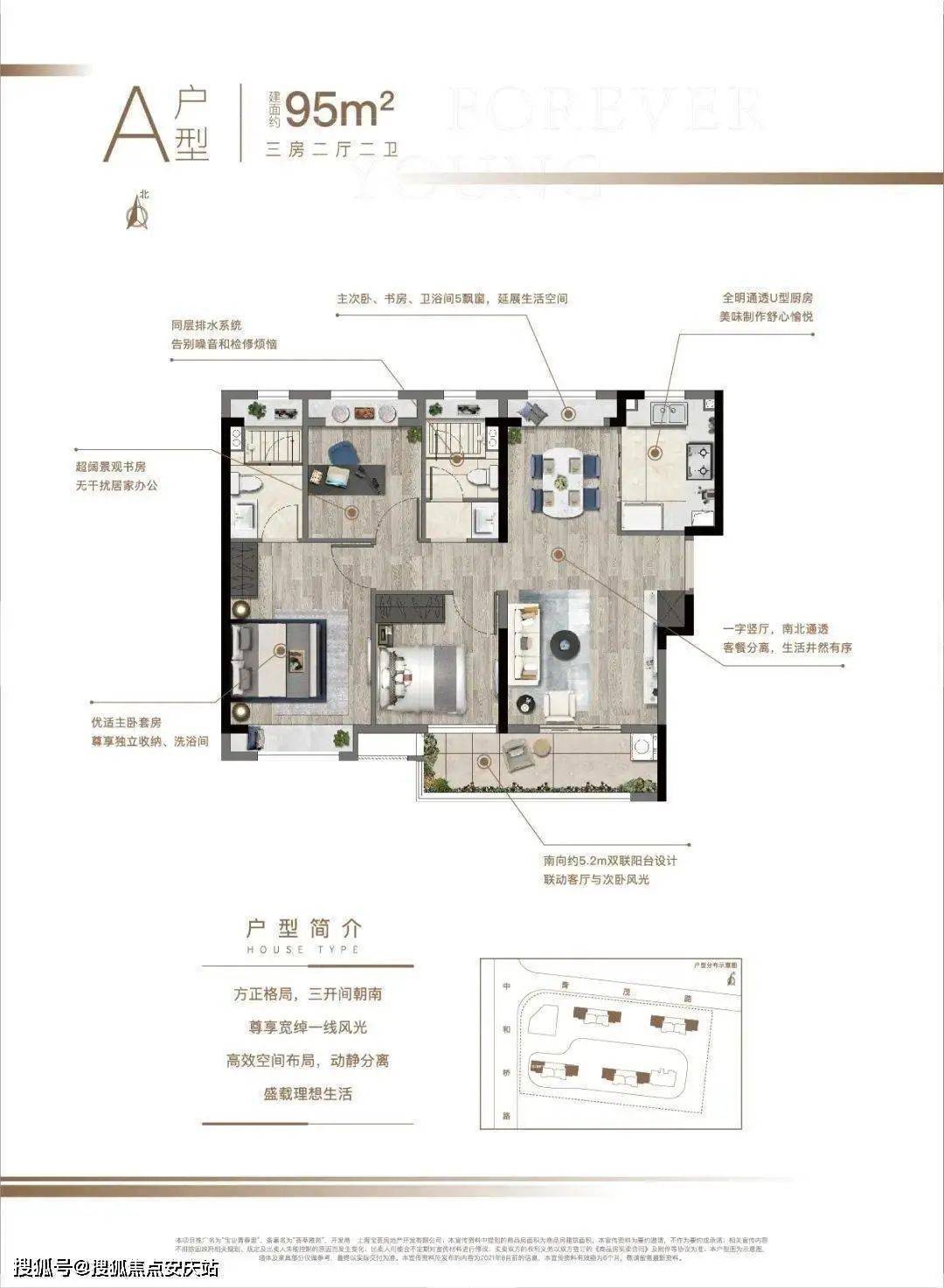 建面95平 3室2厅2卫▼