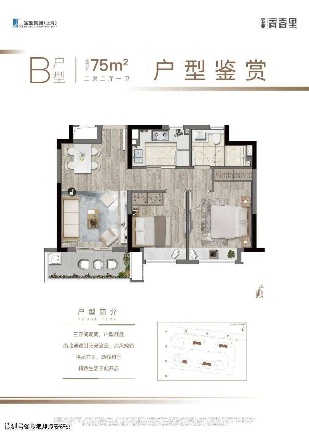 建面75平2室2厅1卫