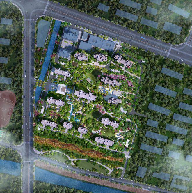 小区整体布局,采用南低北高的分布极大的保证采光和视野的通透性。