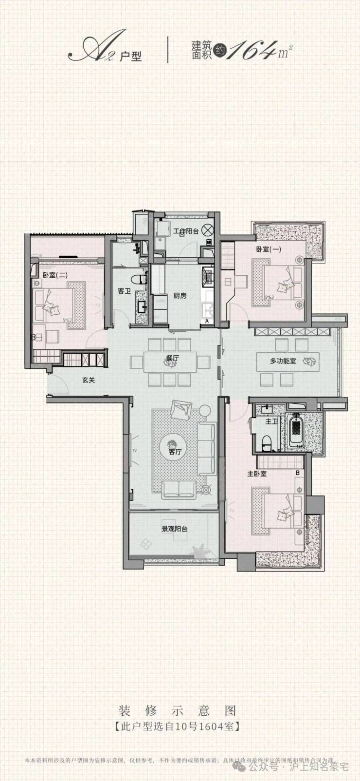 建面约164㎡灵动四房户型