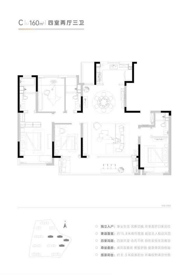 产品有建面约122㎡、132㎡、160㎡三个面积段,从功能布局和尺度感上看,主打纯改善。