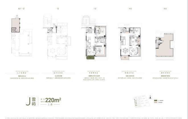 目前,在售一期5套建面约175-220m²叠墅(四层)