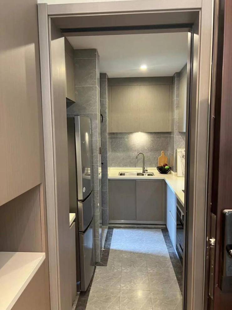 L型厨房让居家烹饪得心应手,卫生间的合理设计让起居动线更为合理有序。