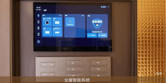 室内空间:引入了全屋智能家居系统,能通过App、中控、语音三大方式,调节全屋智能家居,包括客厅灯光、空调、地暖、新风、客厅和主卧窗帘等场景。