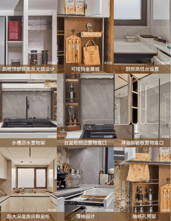 从5大收纳区的镂空玄关柜,到分类更细致的卫浴空间,再到厨房的5大分区,以及更惊喜的餐边柜,划分6大功能区,全屋收纳量飙升!