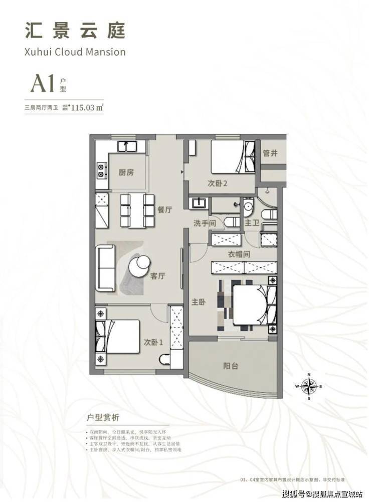 朝向:两南一北户型正,全日照采光,悦享阳光入怀