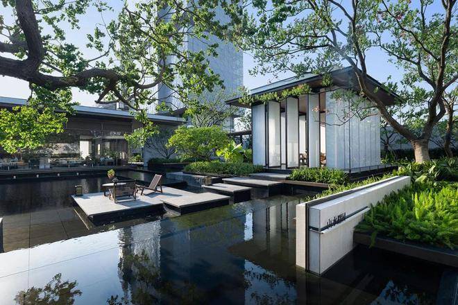 本案园林设计,是现代与古典的融汇运用,山海相拥,四季景色交相辉映,既有传统园林的静谧之美,又展现山海的开阔与壮观。空间之内,东方设计风格得以全新演绎,散发出独特的优雅与深邃。