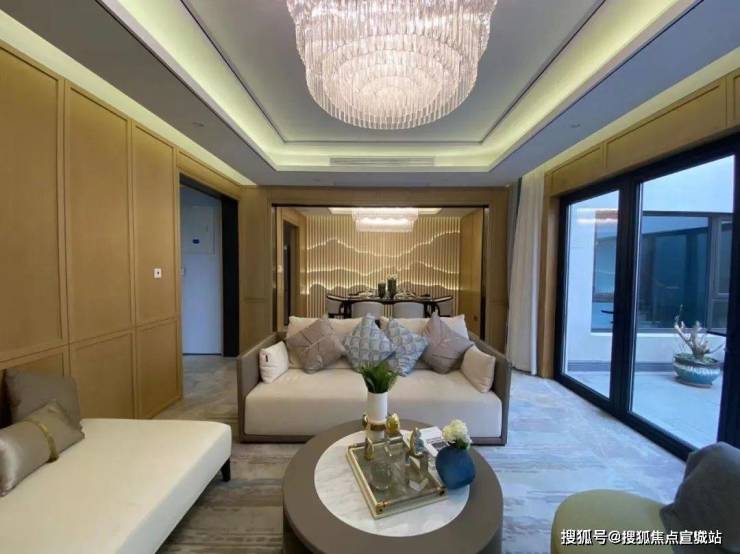 1、客厅虽然位于户型的北侧,但因有着庭院,外加南向有大面积落地窗,客厅也可以享受充足的采光功能,看似朝北的客厅,依旧朝南;