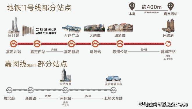 嘉定练祁佳城云汇售楼处电话/地址:400-8778-334【营销中心预约☎】项目距离11号线嘉定西站直距约400米(百度步行距离),乘坐11号线可直达曹杨路环球港、徐家汇等地标商圈;也可在南翔站换乘嘉闵线(在建中)直达大虹桥。