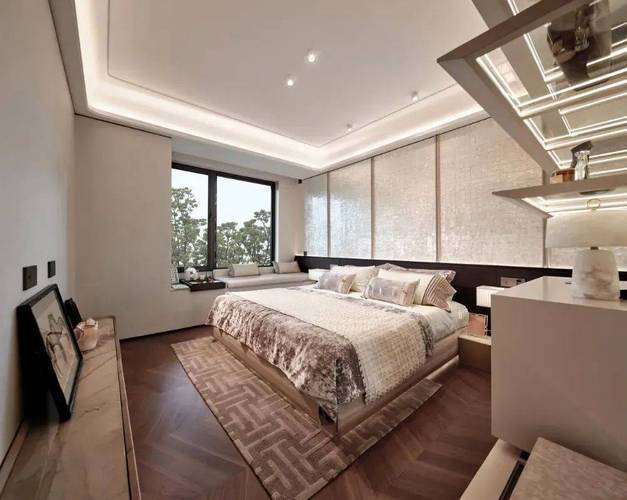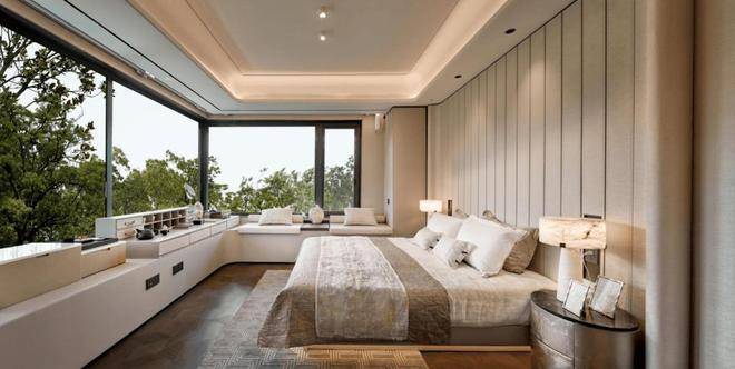 主卧套房270°大转角飘窗,步入式的衣帽间设计,奢华酒店行政套的设计手法,能带来纯正的居家度假式体验。