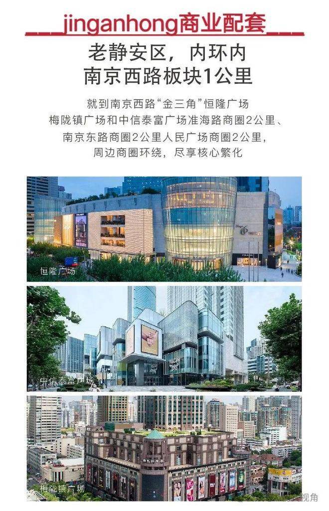 周边配套:上海商城、上海展览中心、梅龙镇伊势丹广场、恒隆广场、中信泰富