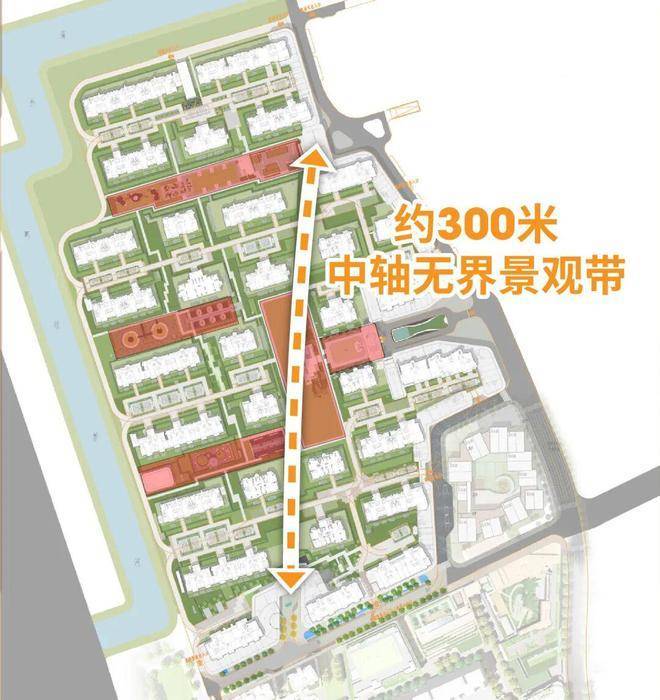 同时,社区中央还有一条约300米长的中轴无界景观带。