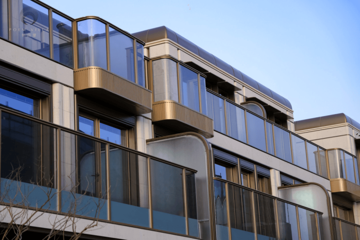 项目外立面采用进口沉香米黄石材为基底,搭配铝板、玻璃等四材八色材质,自然温润,历久弥新!
