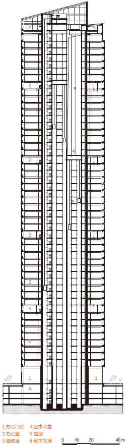 避难层:11/22/33/44 层,层高 4.8m