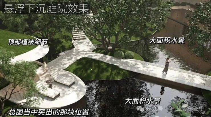 所有楼栋一层全架空,形成风雨连廊和下沉庭院;社区内中央水轴串联四大主题园区(亲子乐园、静谧花园等),甚至引入雾森系统营造“仙境感”。