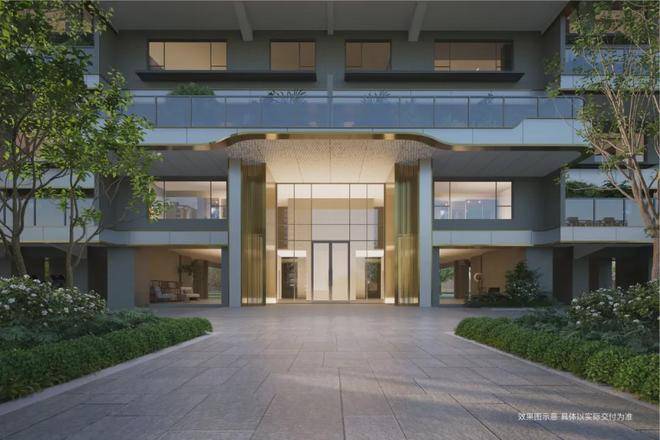 蠡棠森屿拥有酒店式的精装归家大堂,单元入口参照安缦酒店打造的"尊享入户花园",打造不同组团的精致花境。6米挑空门厅以金色镜面铝板勾勒天际线,翡翠岩板背景墙与嵌入式壁灯融为一体,将归家的仪式感拉满。