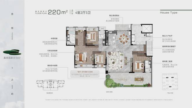 建面约220㎡的「典藏版墅居」堪称空中墅居的终极形态,独门独户+双重归家动线+前庭后院+无界景观+墅级挑高+动静有序+星级主卧。
