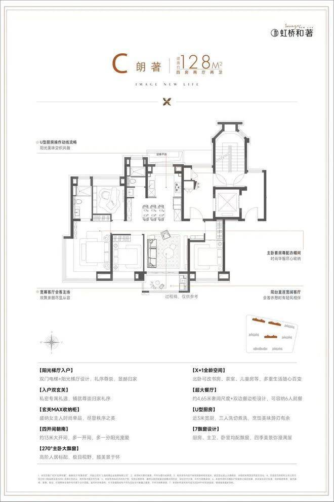 建面约128㎡四房, 无论从尺度感、稀缺性,都是市场上炙手可热的爆款产品!以四房两厅两卫的格局,将居住感与品味融合,即便用“一劳永逸”来形容,也完全不夸张。