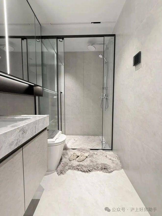 主卫智能一体马桶、顶喷花洒等配置齐全,玄关柜整体交付,诠释有温度的精致人居,更多细节就留待各位现场发掘