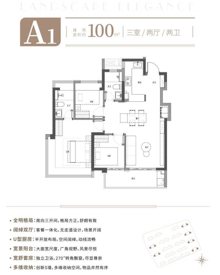 3、约100-144㎡3-4房王炸户型设计近乎完美!3m层高尺度奢阔!细节设计可圈可点:“S”墙冰箱收纳、270°主卧飘窗、超大面宽阳台、以及超高标准的精装配置,更匹配改善人群的高要求!
