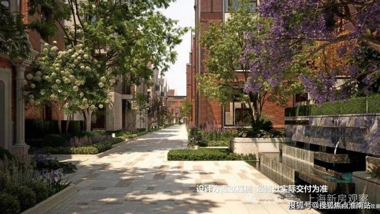 特别设计了八大映象典藏场景景观节点,有百年梧桐下的静谧巷道串联各景观节点,还有充满文化积淀的海派艺术庭院等,营造出精致、典雅的高阶生活氛围。