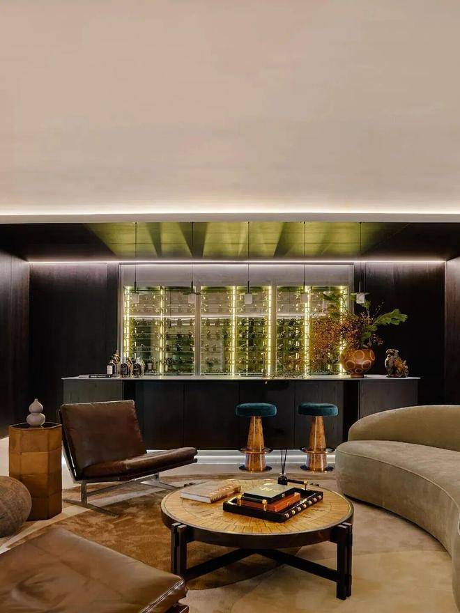 他借鉴度假酒店动线逻辑,将空间清晰划分为静区、动区及后勤区。维修人员可通过独立通道作业,不影响主人生活。同时,SPA、影院等功能互联互动,让主人在享受休闲配套之际,仍拥有充分的私密与宁静。