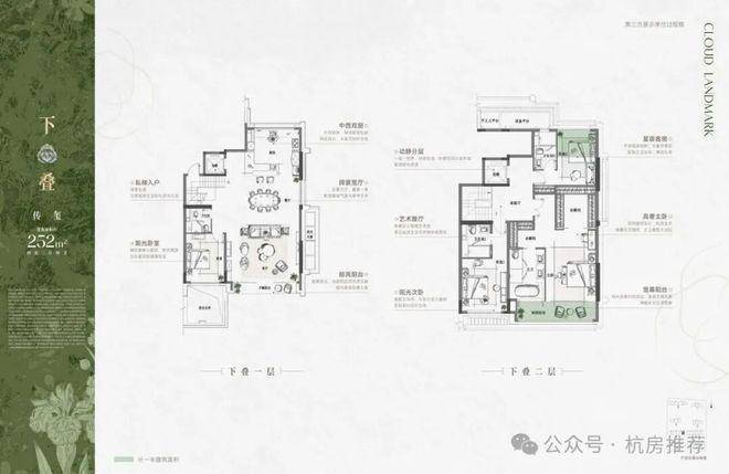 在产品形态上,望云润玺院打出了新玩法,即建面约260方中叠,不仅也有独立入户庭院,私密感十足,还有一个挑高约6米的地下室,面积约35-40方,创新属性拉满,在杭州很少见。