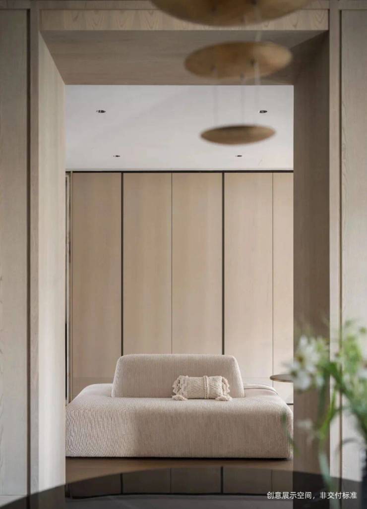 三楼整层为主卧套房,样板间设计了双开门入卧室,进入起居空间,样板间选择在这里放一些艺术装饰、设计吧台来彰显主人品味。