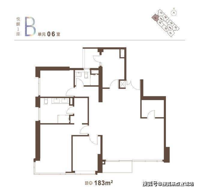 183㎡(4房2厅3卫,270°转角窗设计)
