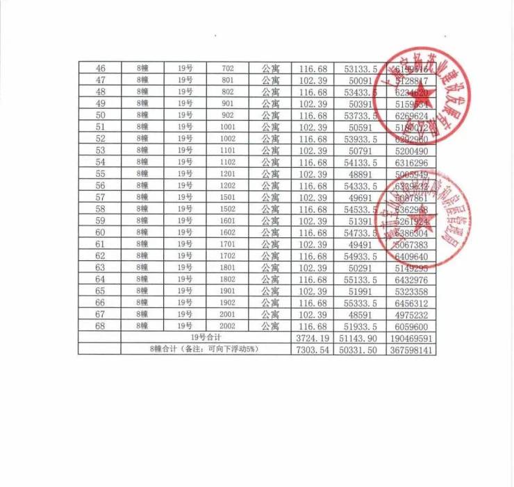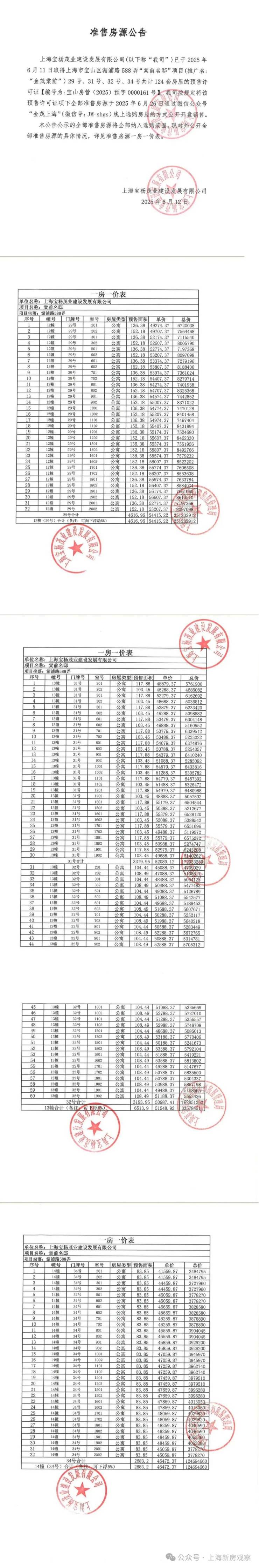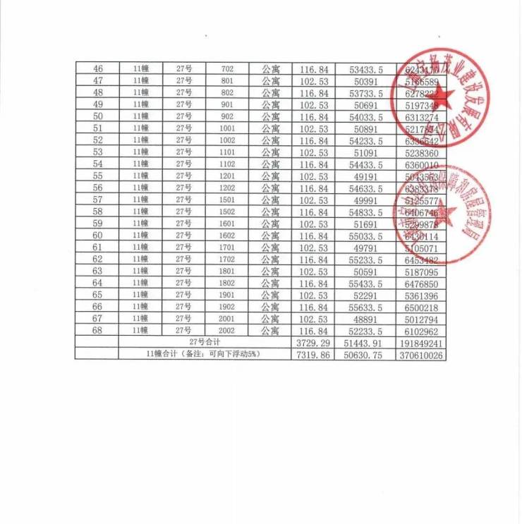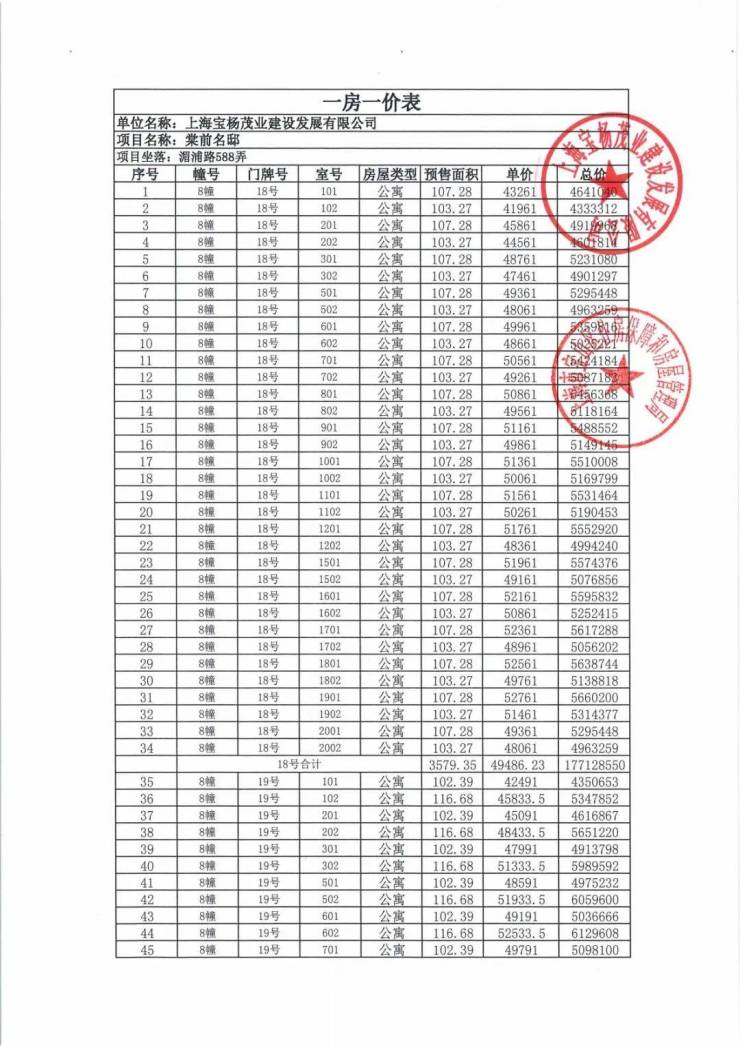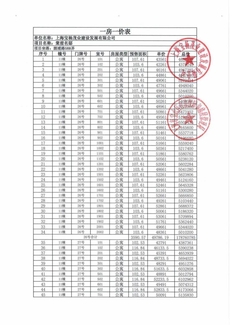 一房一价表发布!
