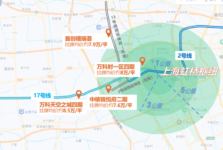 北上海大华项目紧随其后,同样剑指14万+/㎡;